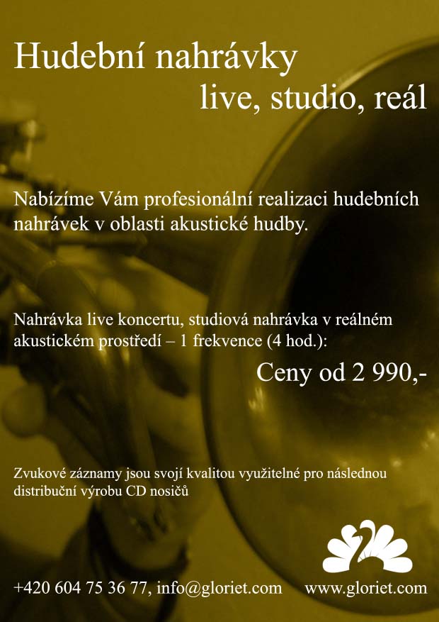 Cena zahrnuje: digitální záznam stereo, 2 mikrofony, stativy, příslušenství, mastering, výsledný zvukový nosič CD, doprava po Praze